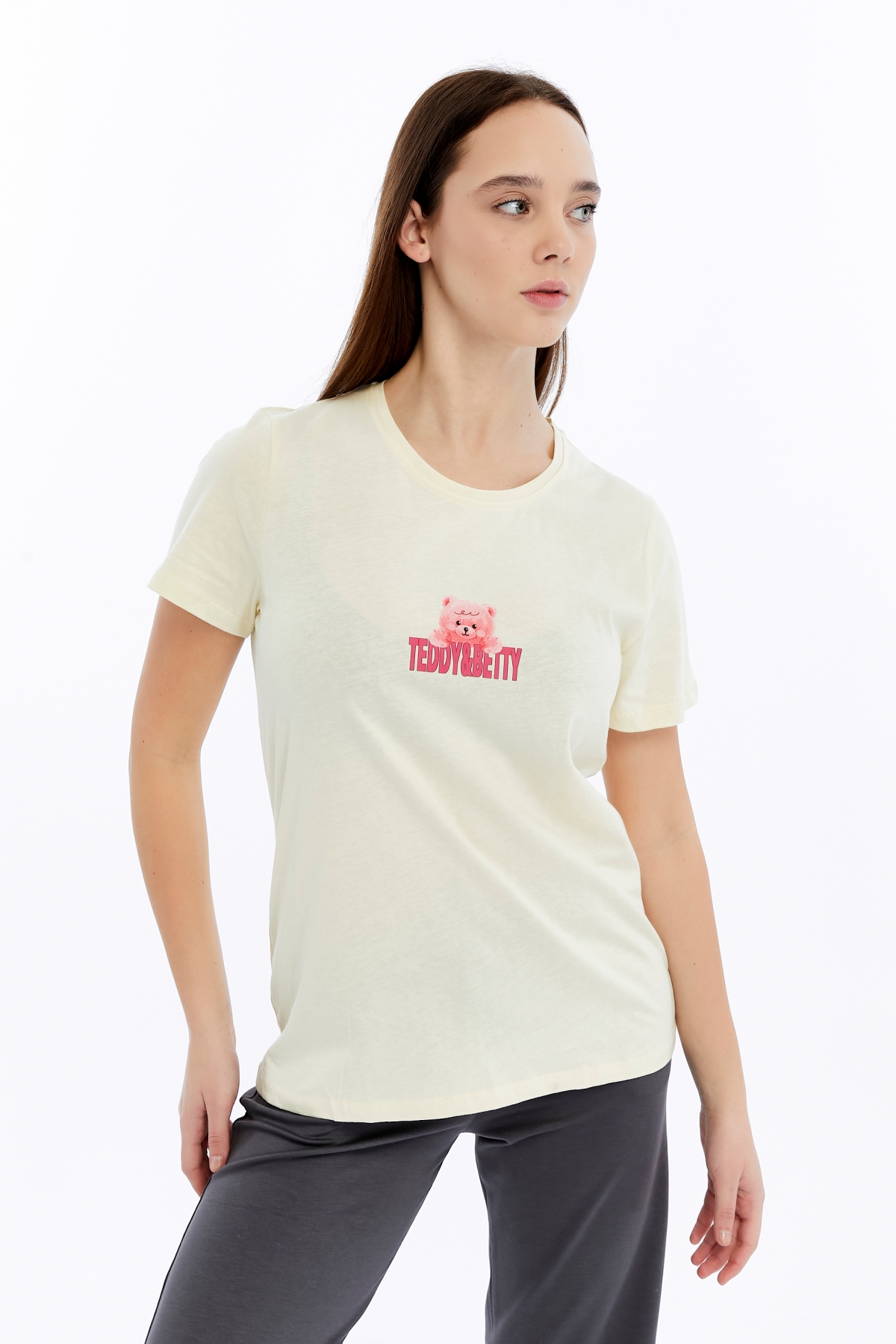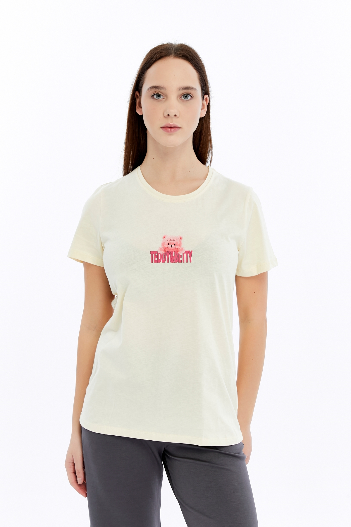 26YL71595004_15 Ayıcık Baskı Kadın T-Shirt